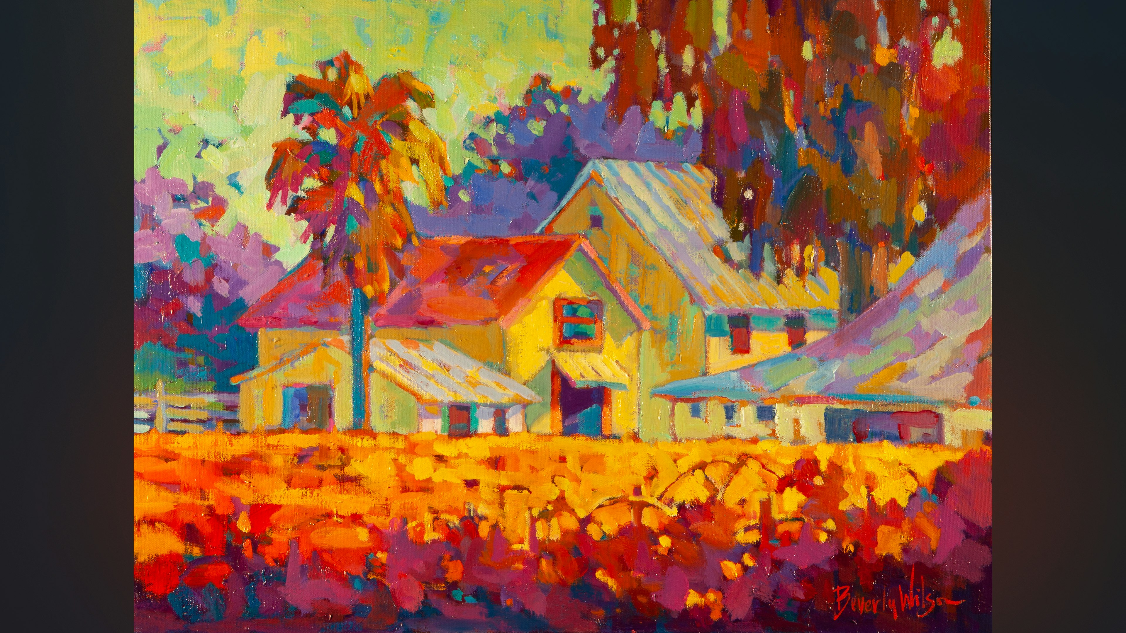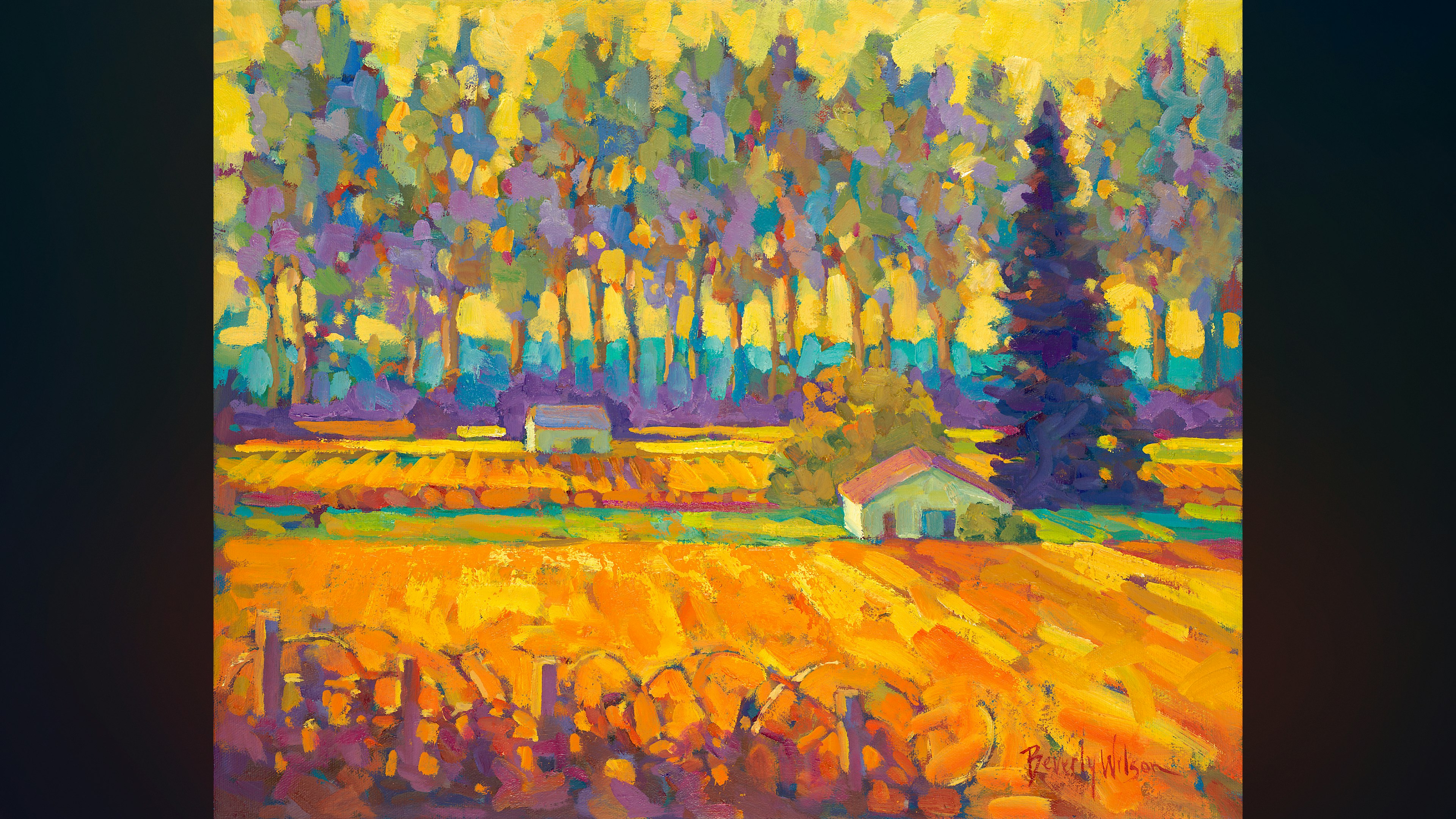 As a student of Richard Diebenkorn in the early 1970s, Beverly was drawn to the qualities of the expressionists and colorists, and her work began an evolution into a vibrant style of her own. She traveled to vineyard regions of Tuscany and Umbria, painting the Mediterranean “colors.” It was this love of the wine country and the tranquility of rural life that brought her to the Napa Valley in 1983.
