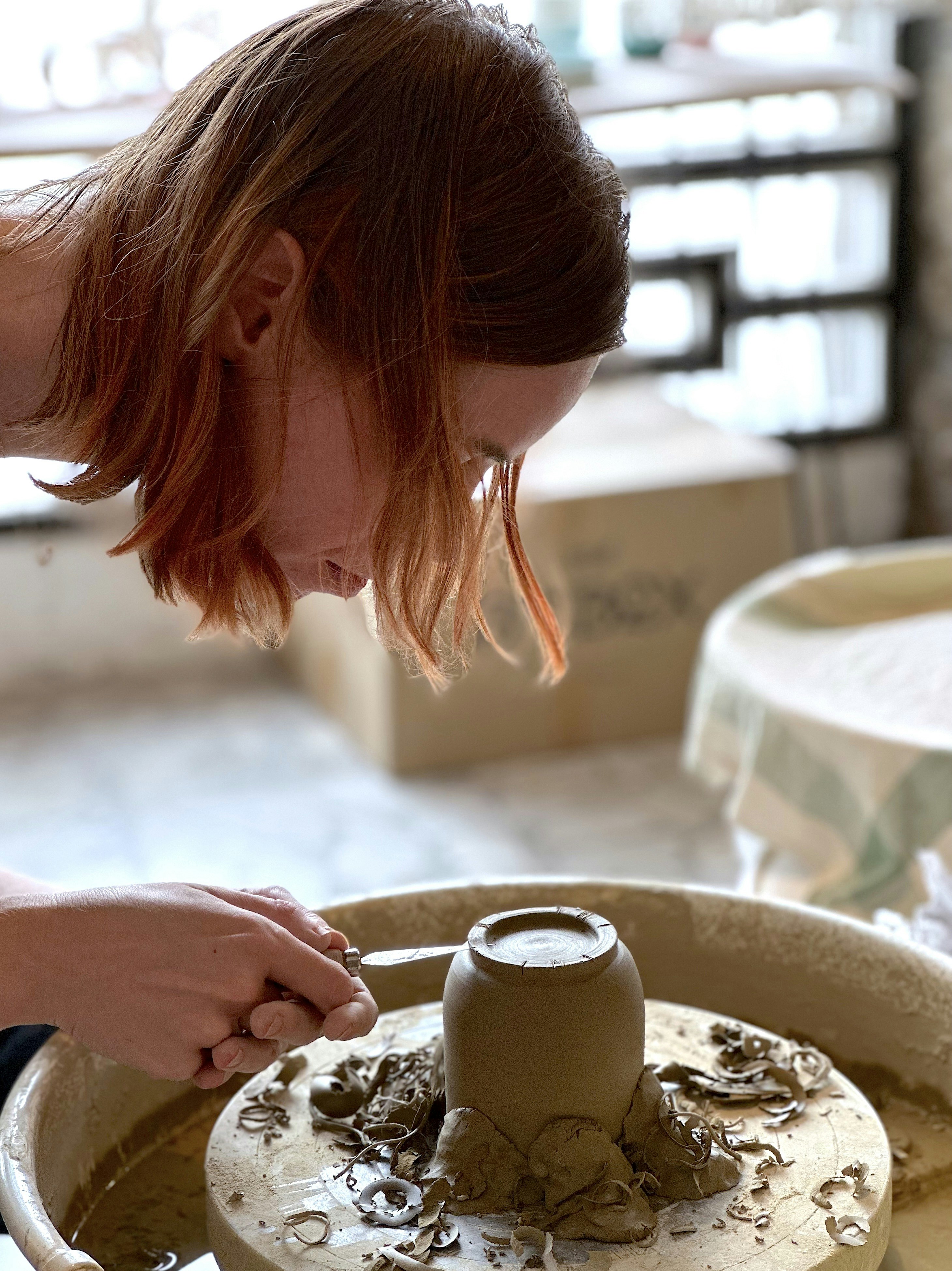 - Learning potter's wheel techniques like wedging, centering, trimming to make cylinders, tumblers, bowls or plate.