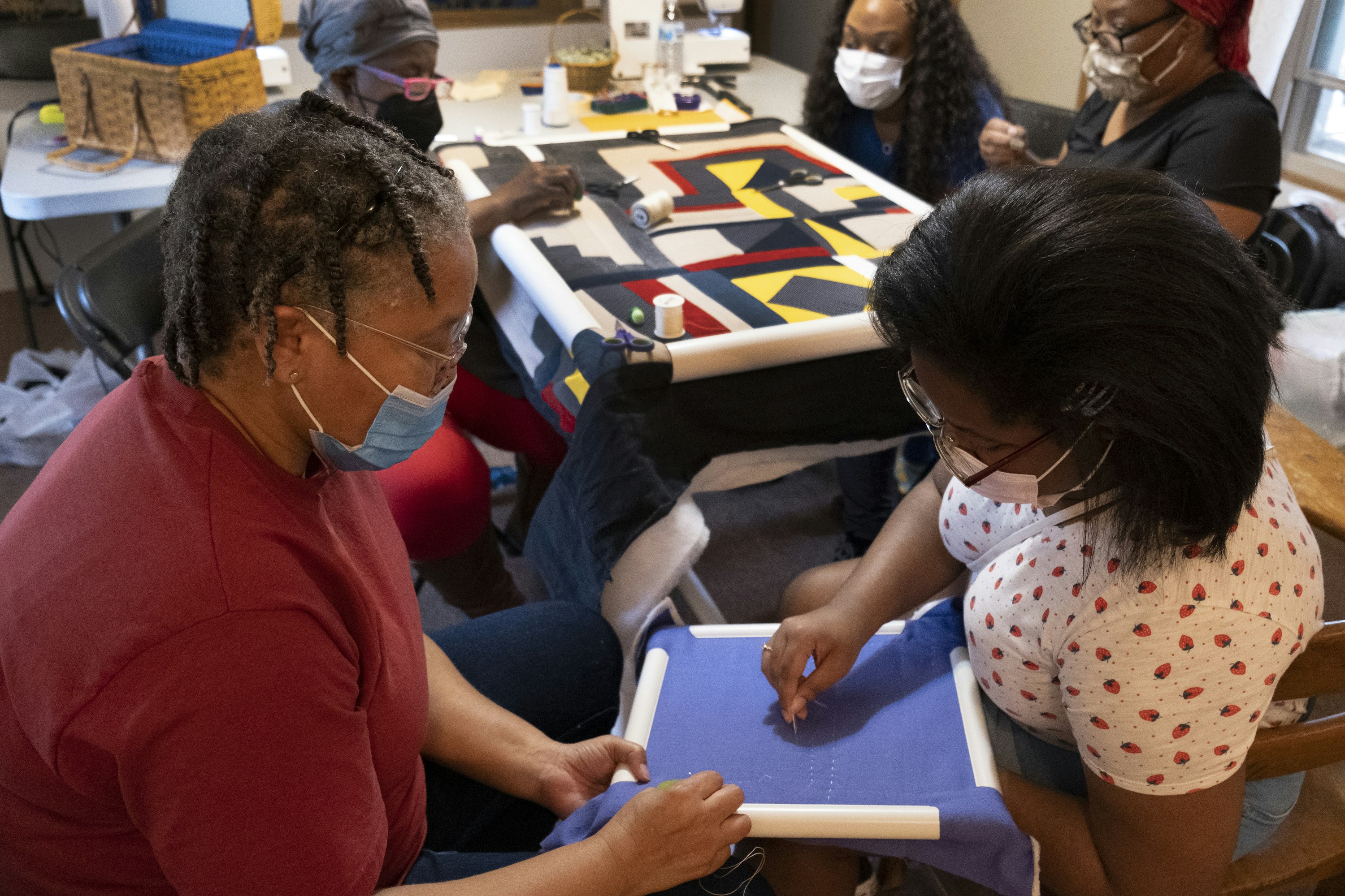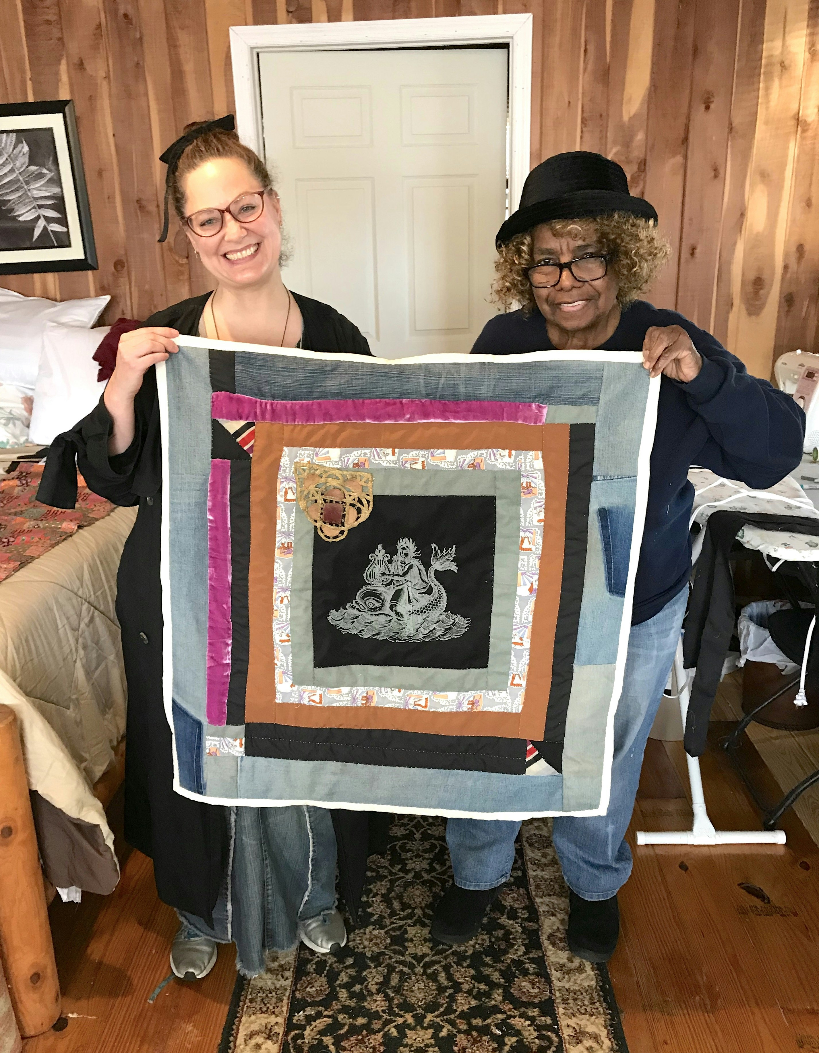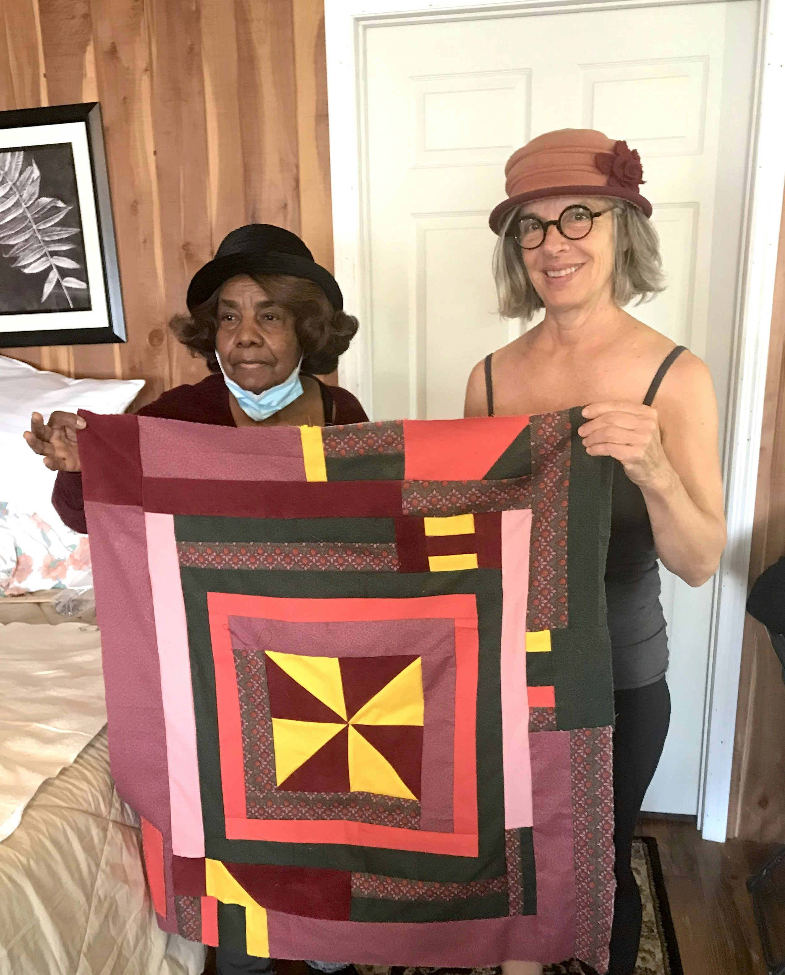Quilting with Loretta & Marlene was a magical experience. We are sewing novices and they guided us with such patience. Our time with them was so peaceful and rejuvenating. And we love our quilts, which are infused with our family’s pieces of fabric but also with Gee’s Bend style.