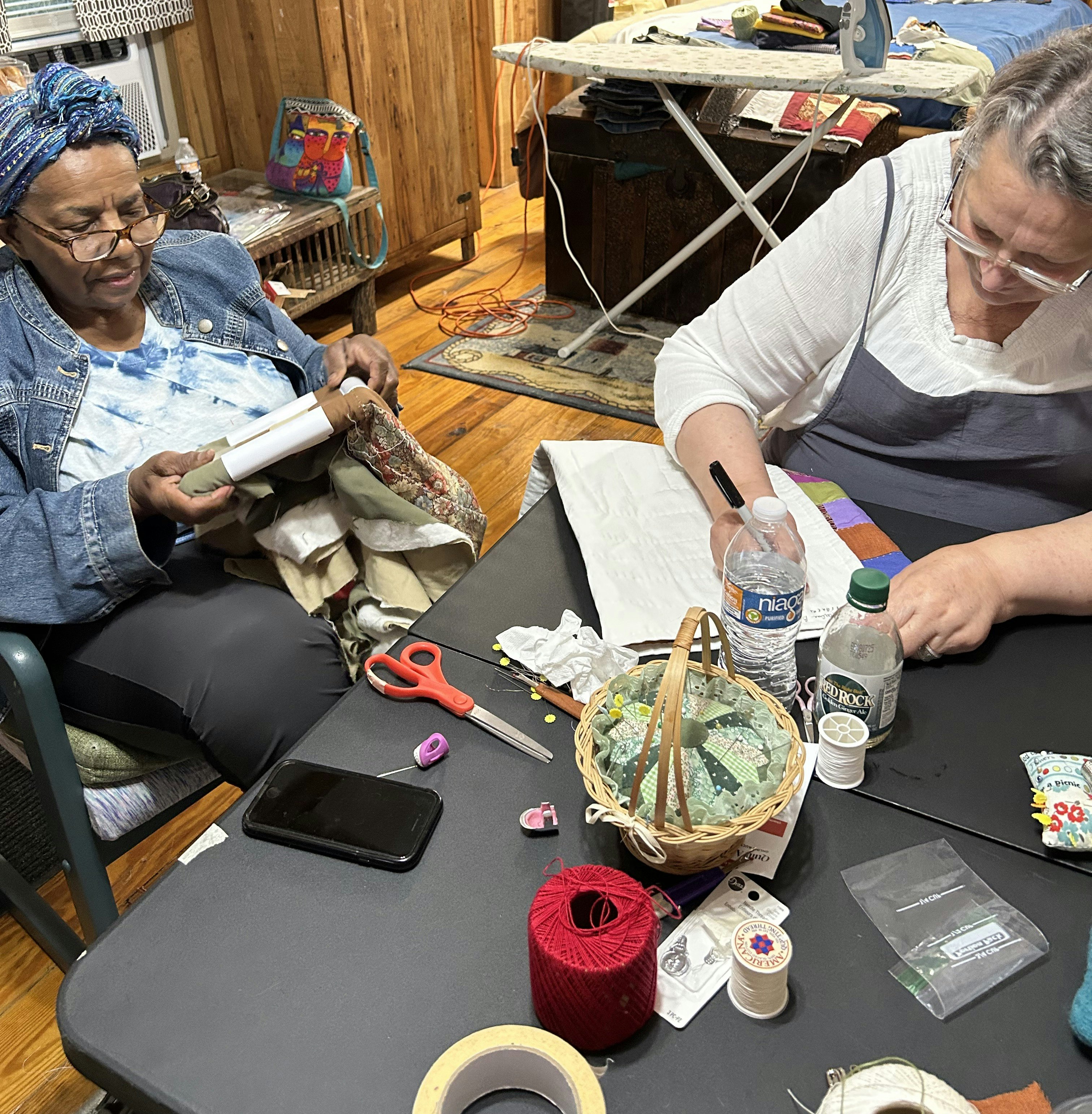 Loretta and Marlene are super welcoming of any level sewers. I knew how to work a sewing machine from home ec 15+ years ago and it was enough to get going!! I’m not an experienced quilter but I learned so much from these two that I will be creating momentos and working toward a bigger quilt on my own. The techniques they showed me were approachable and artistically driven.