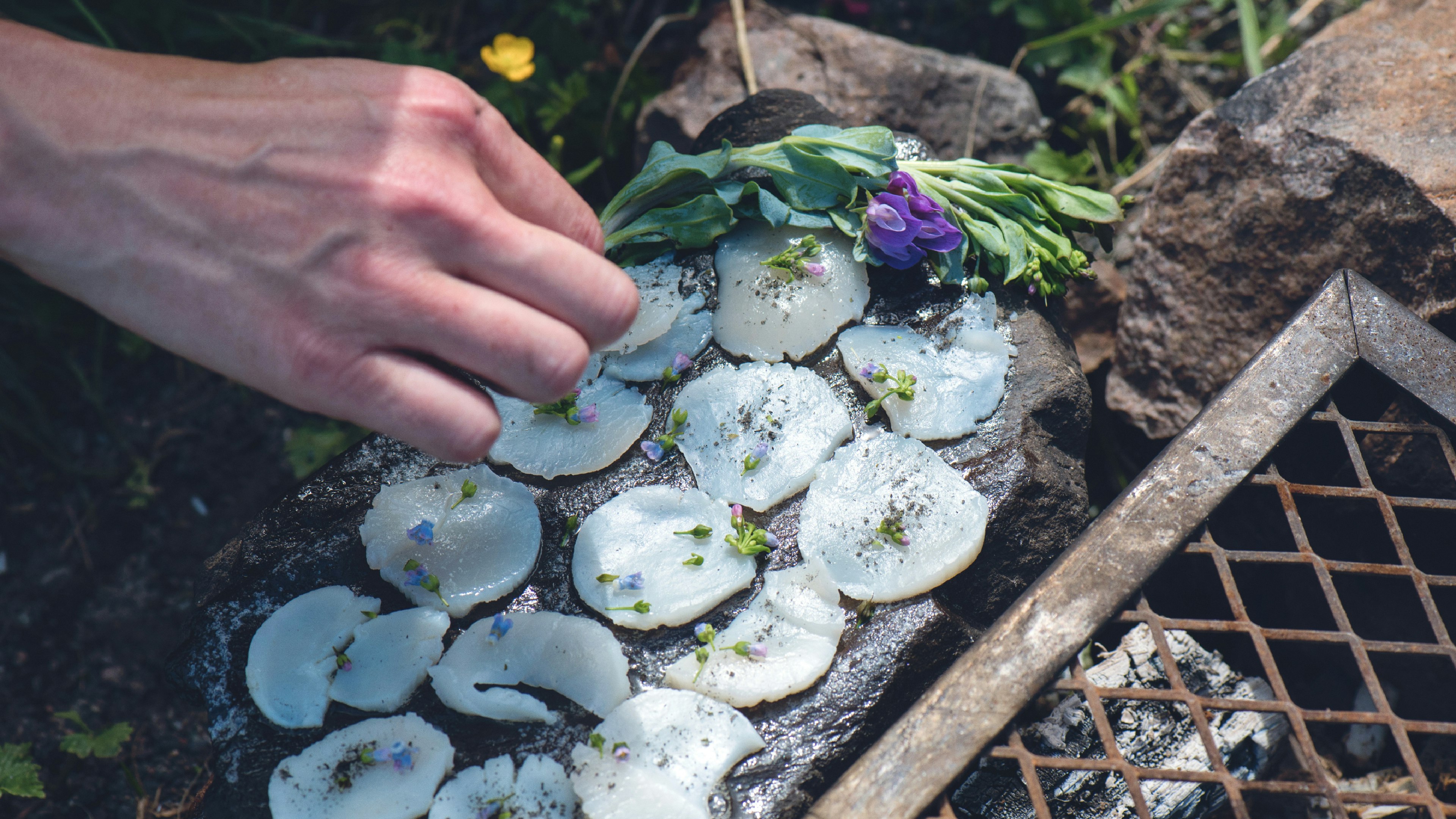- Harvesting seawater and techniques for smoking seaweed to make salt.