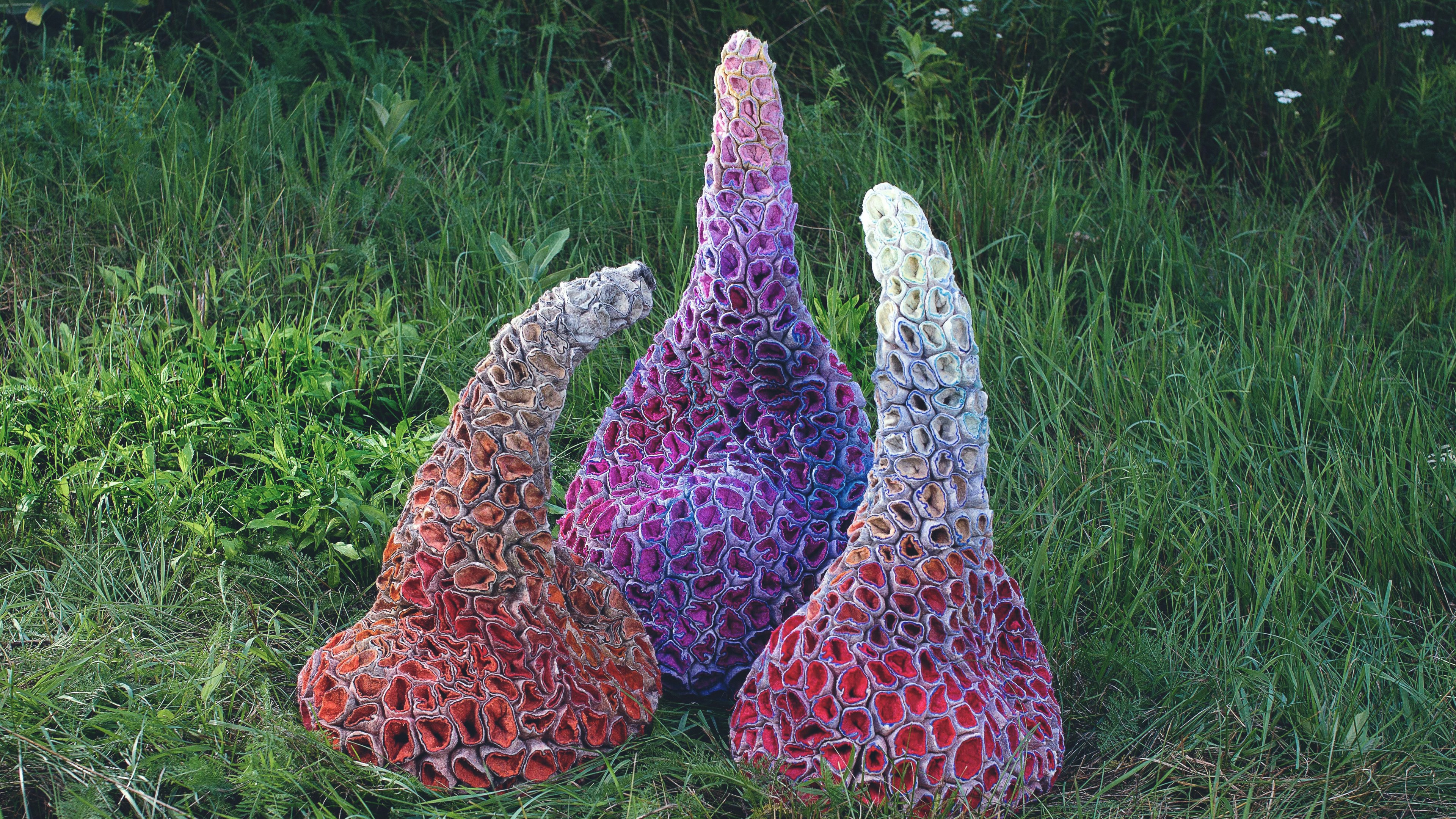 Marjolein’s work is very rhythmic and she creates different shapes and intriguing textures with wool. She finds the element of surprise and transformation very inspiring, and enjoys witnessing the metamorphosis of the soft wool fibers into solid three dimensional creations. Wool has a strong character of its own which triggers and pushes her towards new discoveries. She endlessly explores how to use color with wool, and has extensively experimented with felting and developed her own sculpting techniques. Marjolein has shown her pieces in many international exhibitions, and made several art movies with her large-scale felted sculptures.
